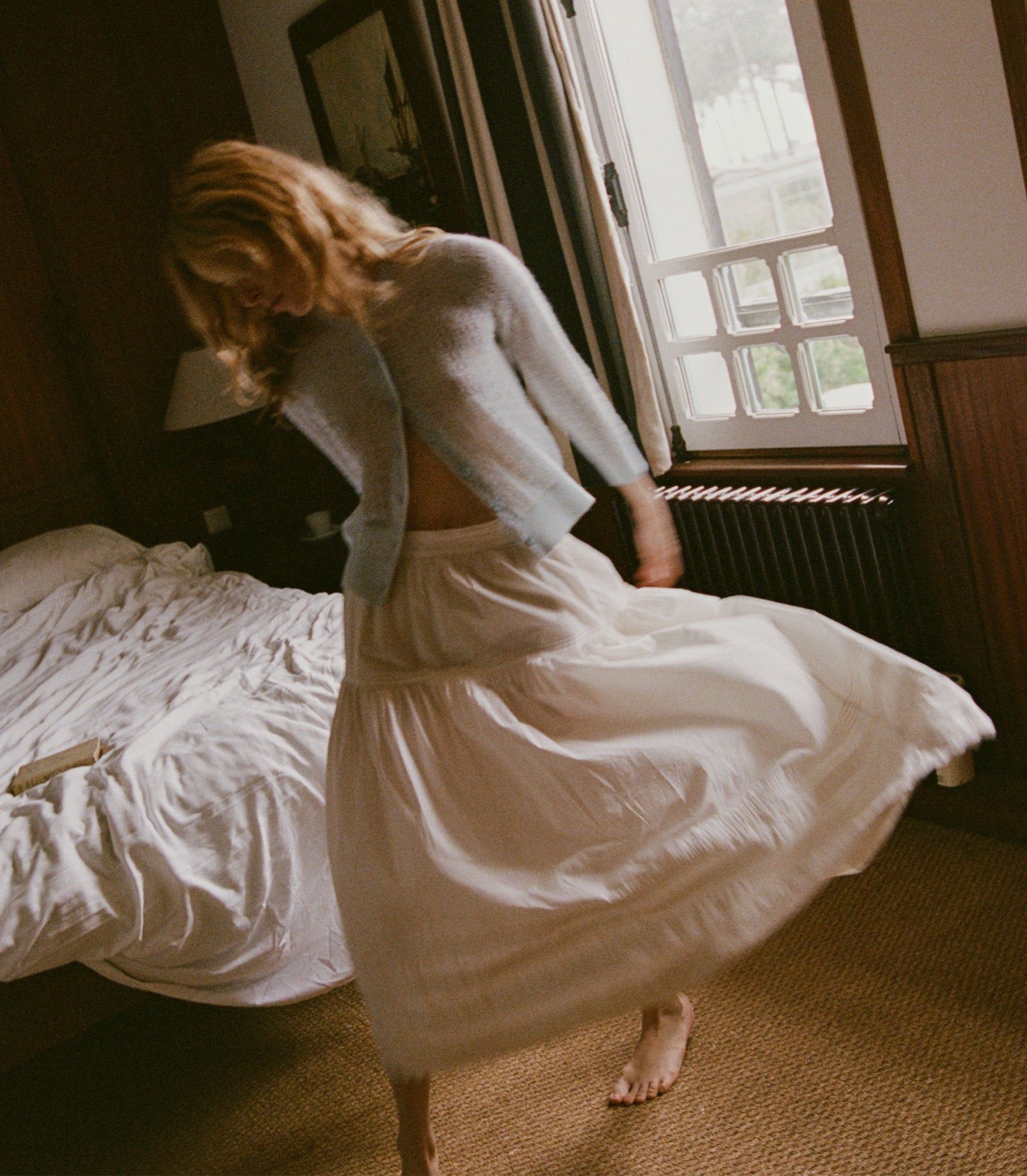 Our beloved Danaë Cardigan returns, now reimagined in a soft, slightly sheer blend of superfine alpaca and merino wool with a delicate allover pointelle design. The Danaë features a classic crew neck, a fitted silhouette, and bracelet-length sleeves. A line of mother-of-pearl buttons extends down the front.
