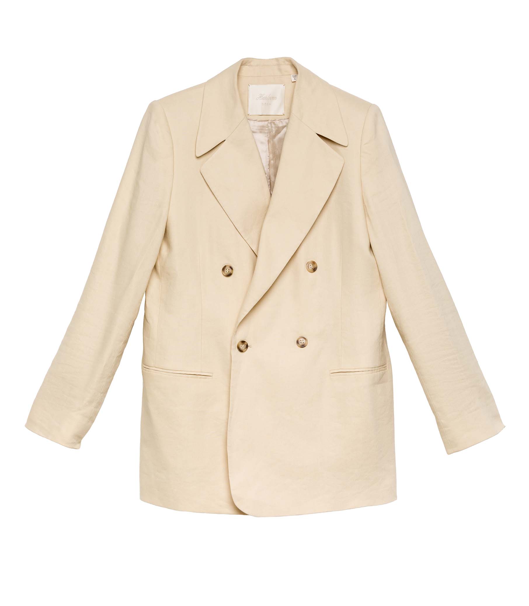 Tailored in a soft linen-viscose blend with a viscose twill lining, the ‘70s-inspired DÔEN Heirloom Danton Blazer—a favorite of our co-founders Margaret and Katherine—features a boxy double-breasted cut, an exaggerated collar with a notched lapel, full-length sleeves, shoulder pads, welt pockets, and faux horn buttons.