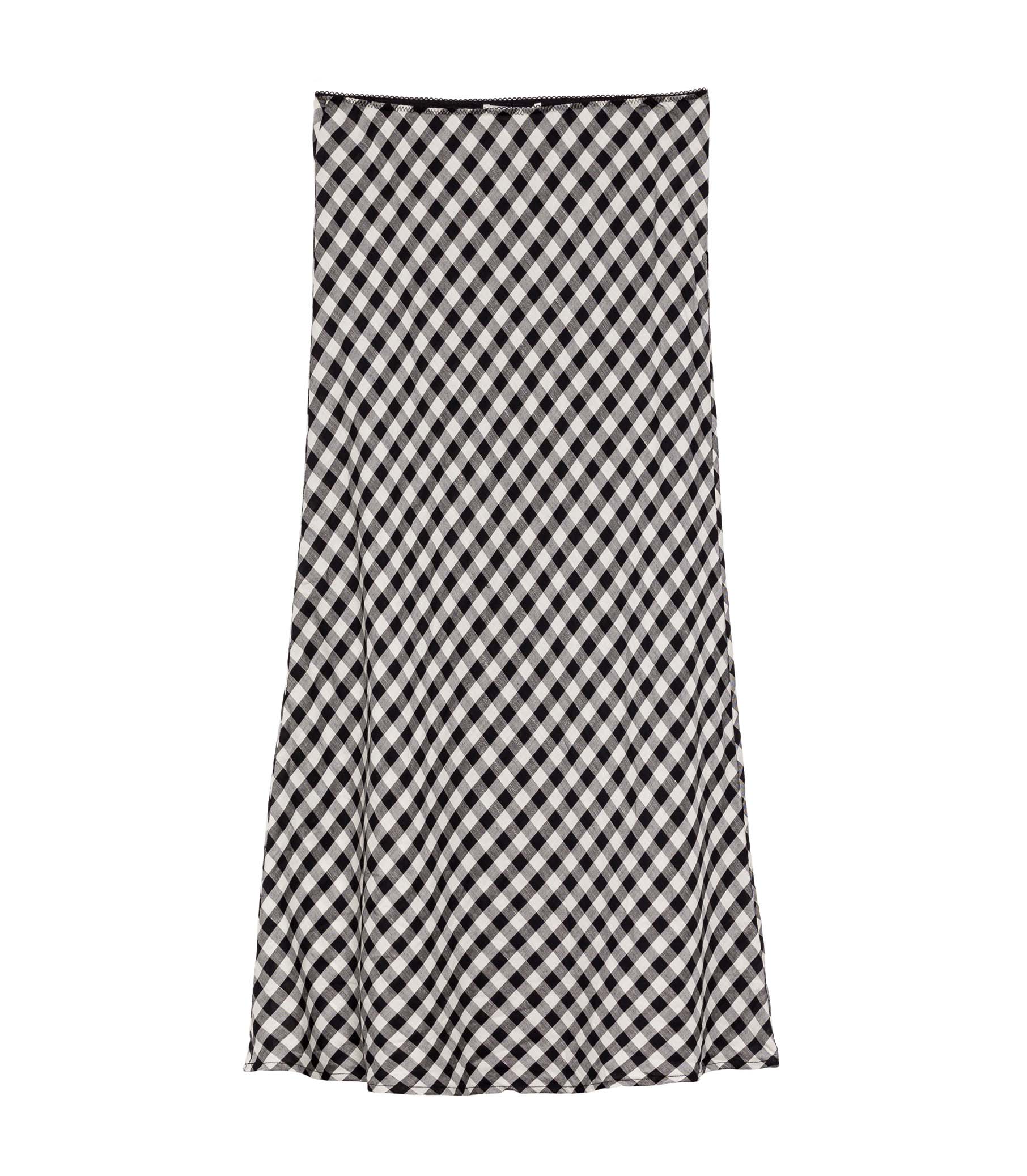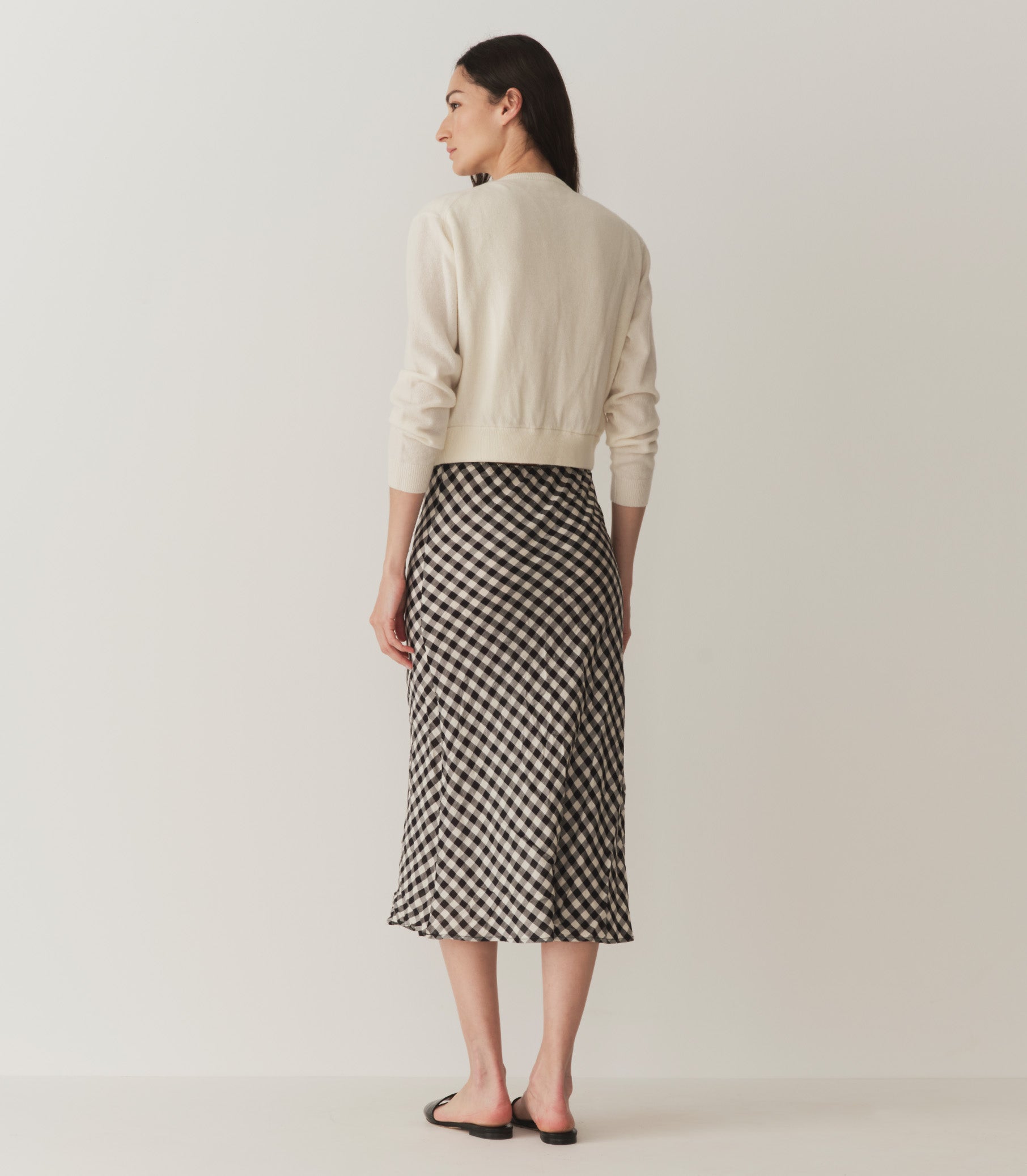 Crafted from a lightweight rayon-linen blend and rendered in our yarn-dyed Marilyn Gingham, the Elowen Skirt—a favorite of our co-founders, Margaret and Katherine—is our take on a '90s-style slip skirt. The high waist is trimmed with elastic scallop detailing, while a bias-cut skirt falls to mid-calf.