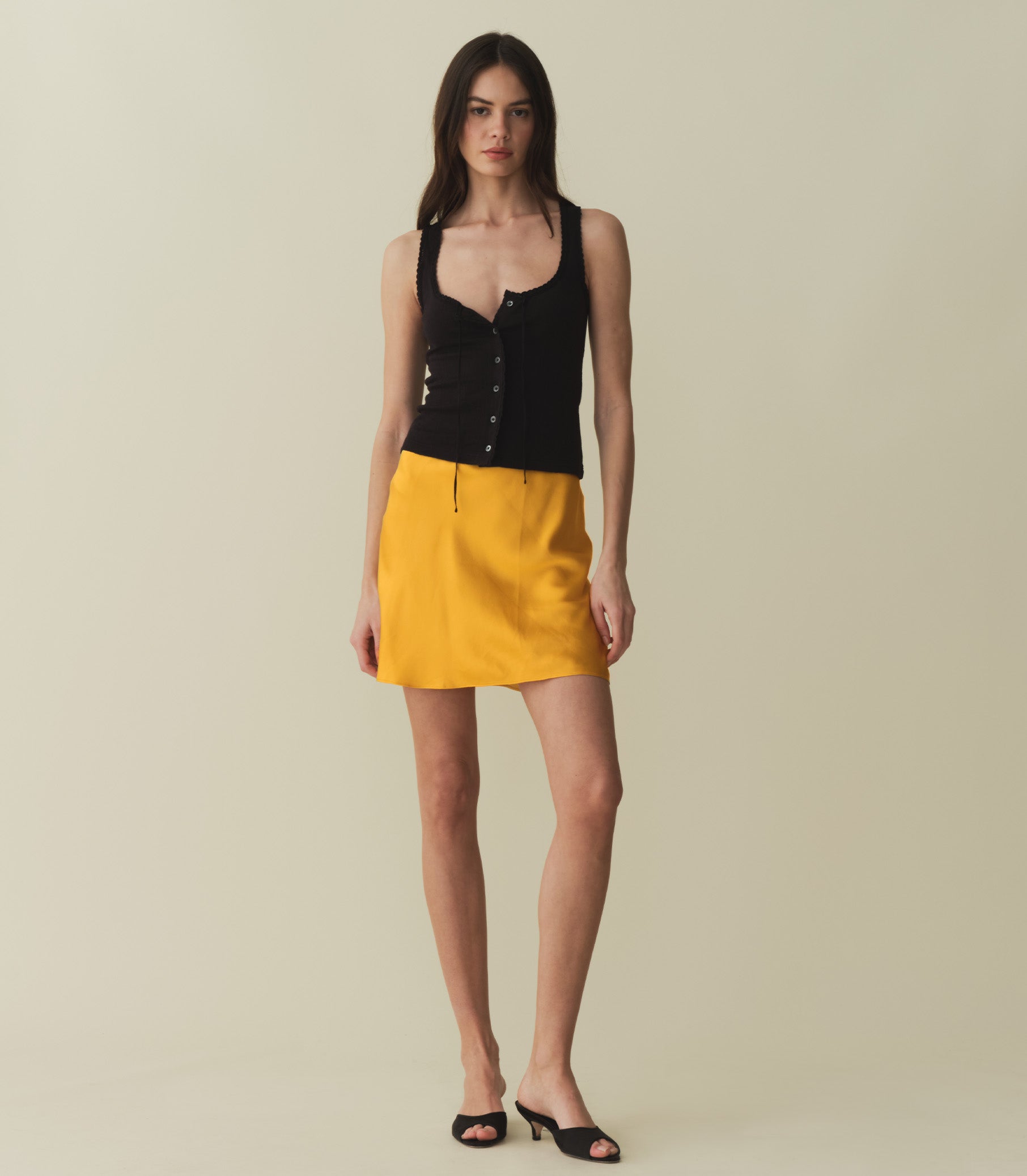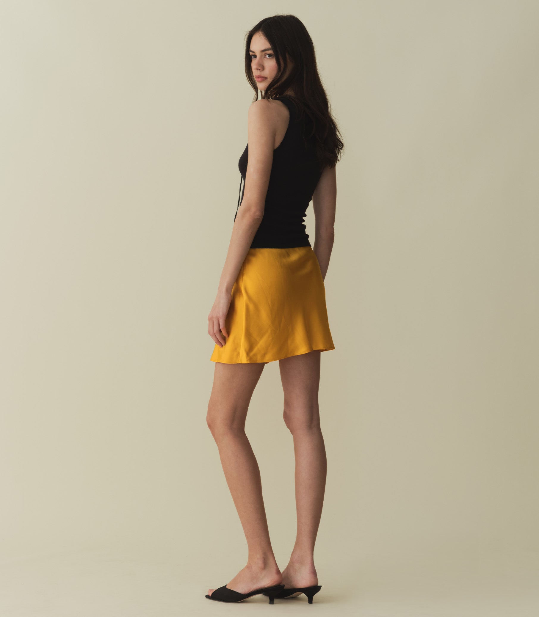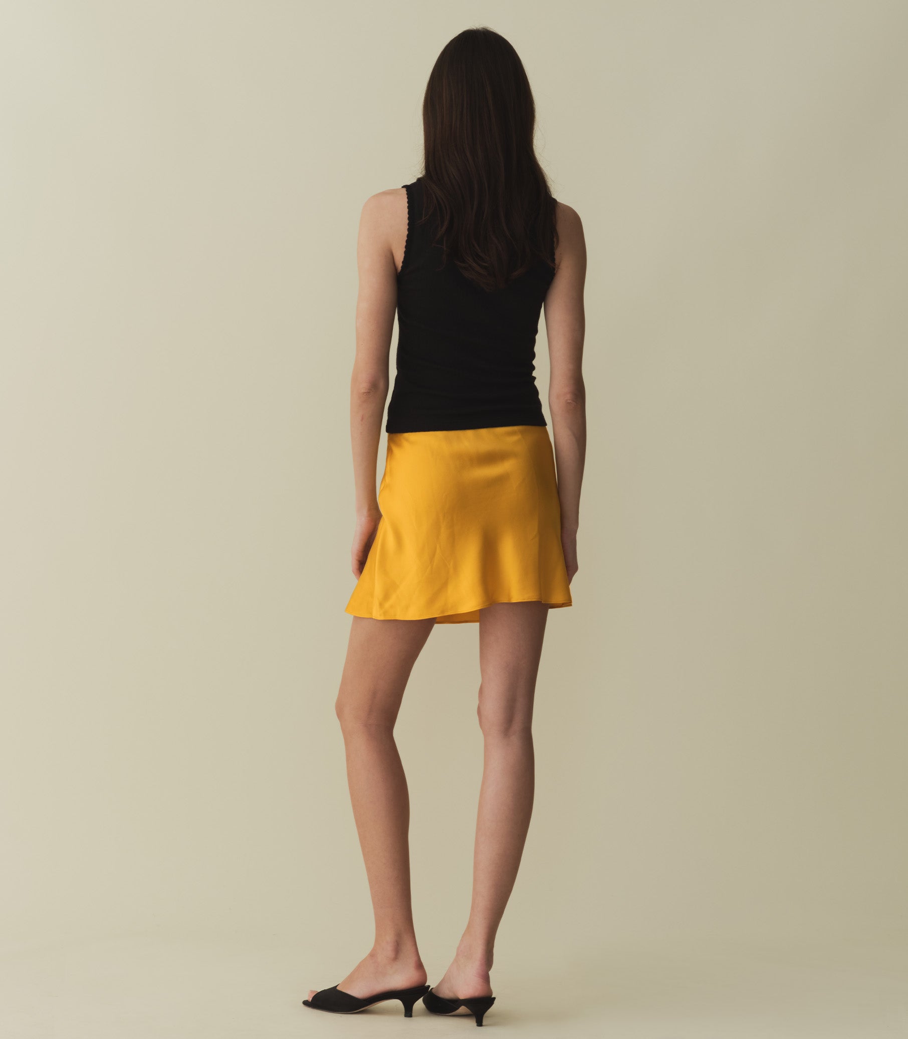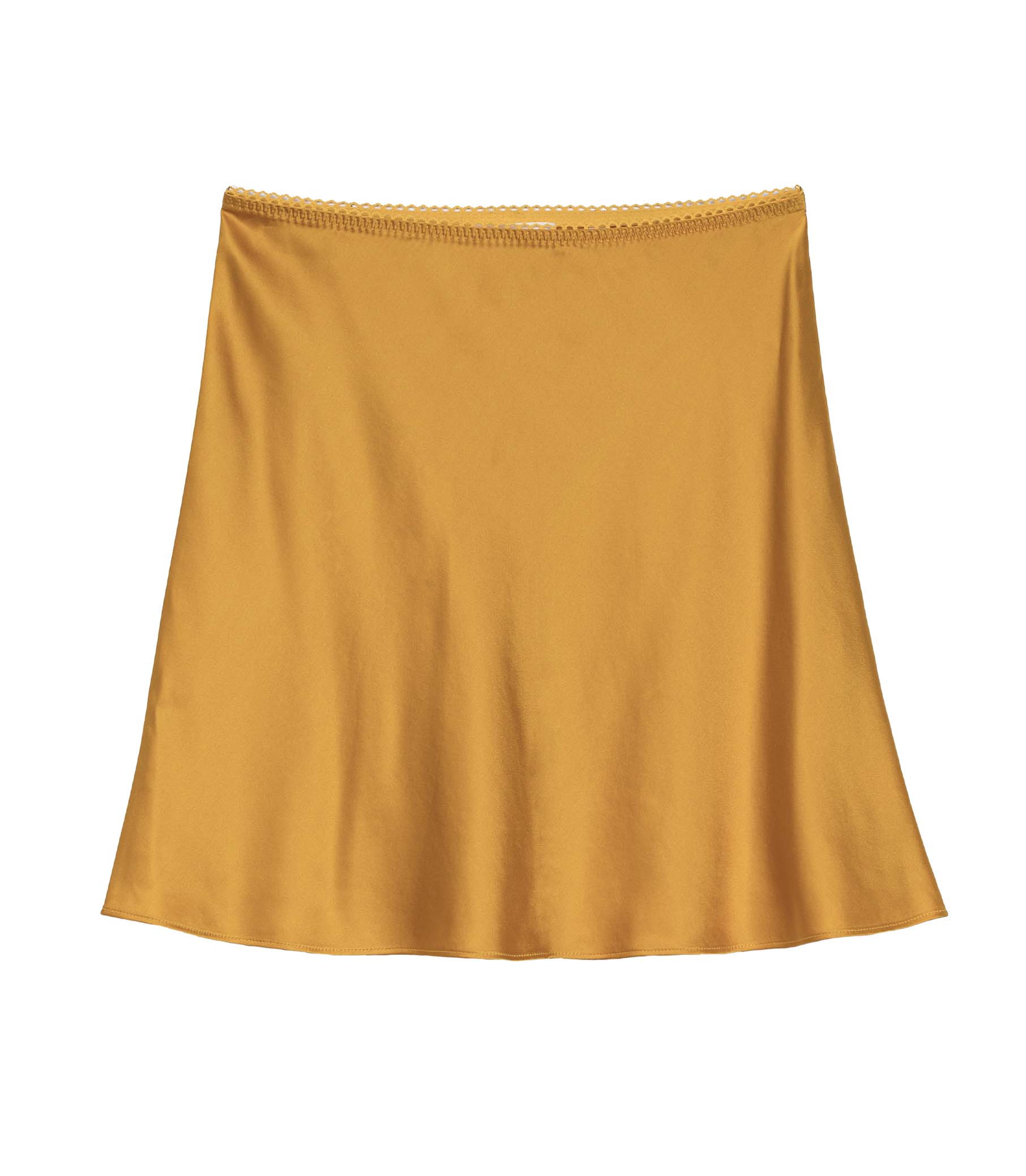 In buttery garment-washed silk satin, the Giuletta Skirt is a favorite of our co-founders Margaret and Katherine. It features a high waist trimmed with delicate scallop elastic, an A-line cut, and a bias-cut hemline.