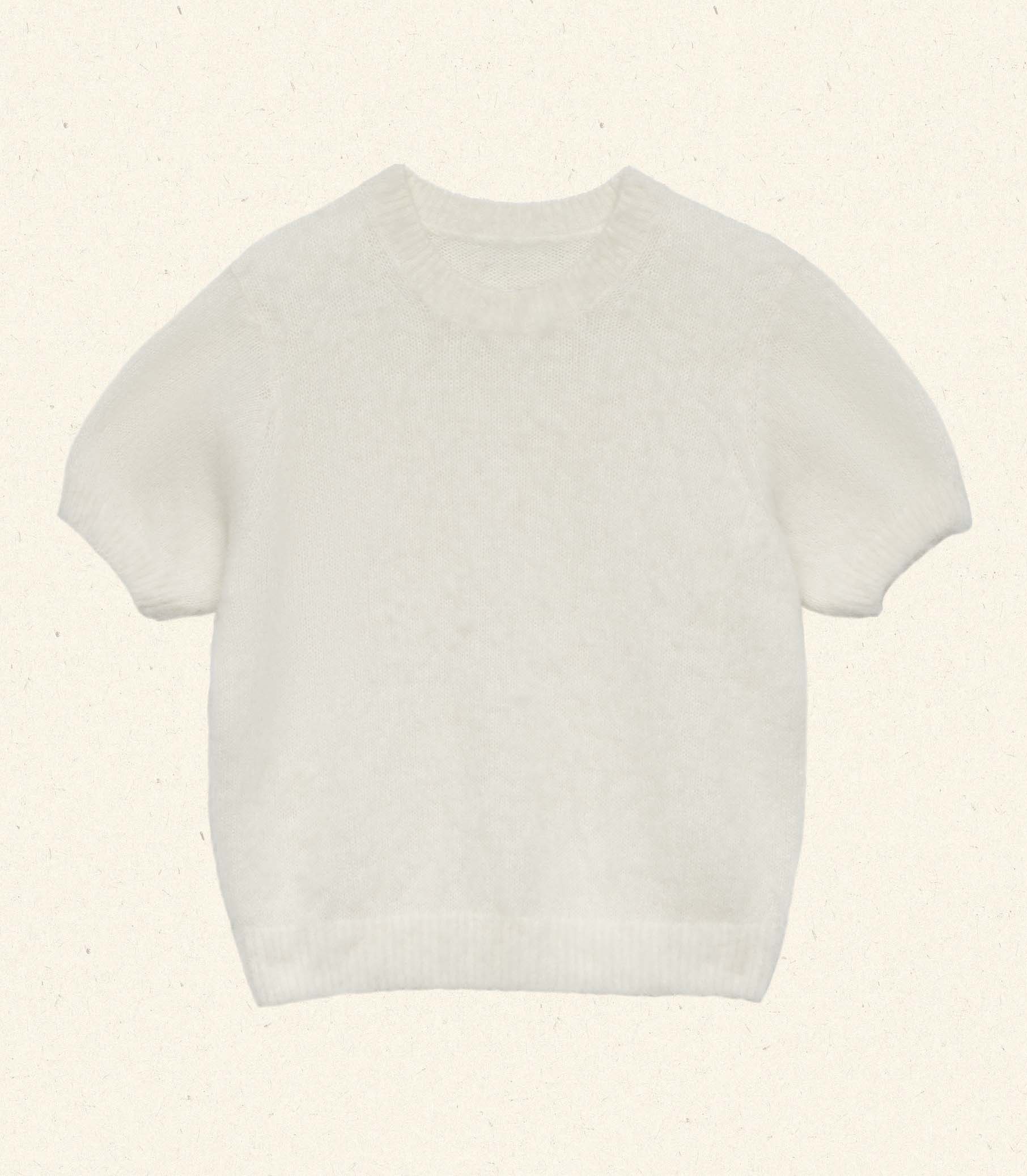 In a fluffy, brushed alpaca-wool blend, the Hearst Sweater—a new favorite of our co-founder Katherine—is a ‘60s-inspired knit with short puffed sleeves and ribbing at the neckline, cuffs, and hem.