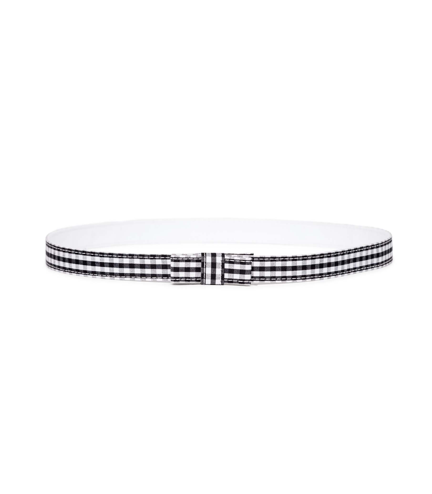 Crafted from cotton with a leather backing, the Junie is a slender belt intended to be worn at the high waist over dresses, shorts, and trousers alike. It features a sweet bow detail and fastens at the front with a hidden hook-and-eye closure.