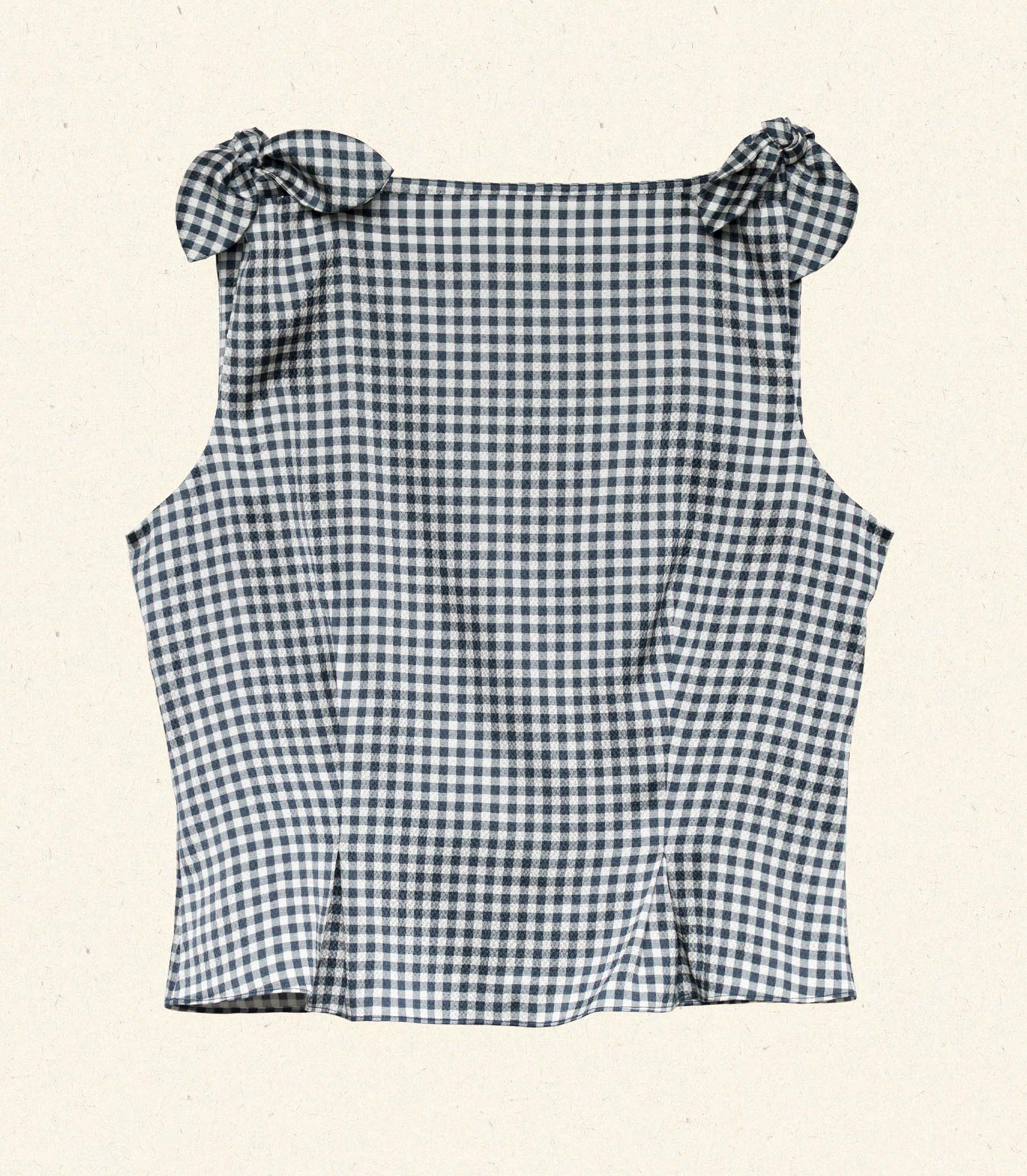 LIRIEL TOP -- NAVY VALENCIA GINGHAM