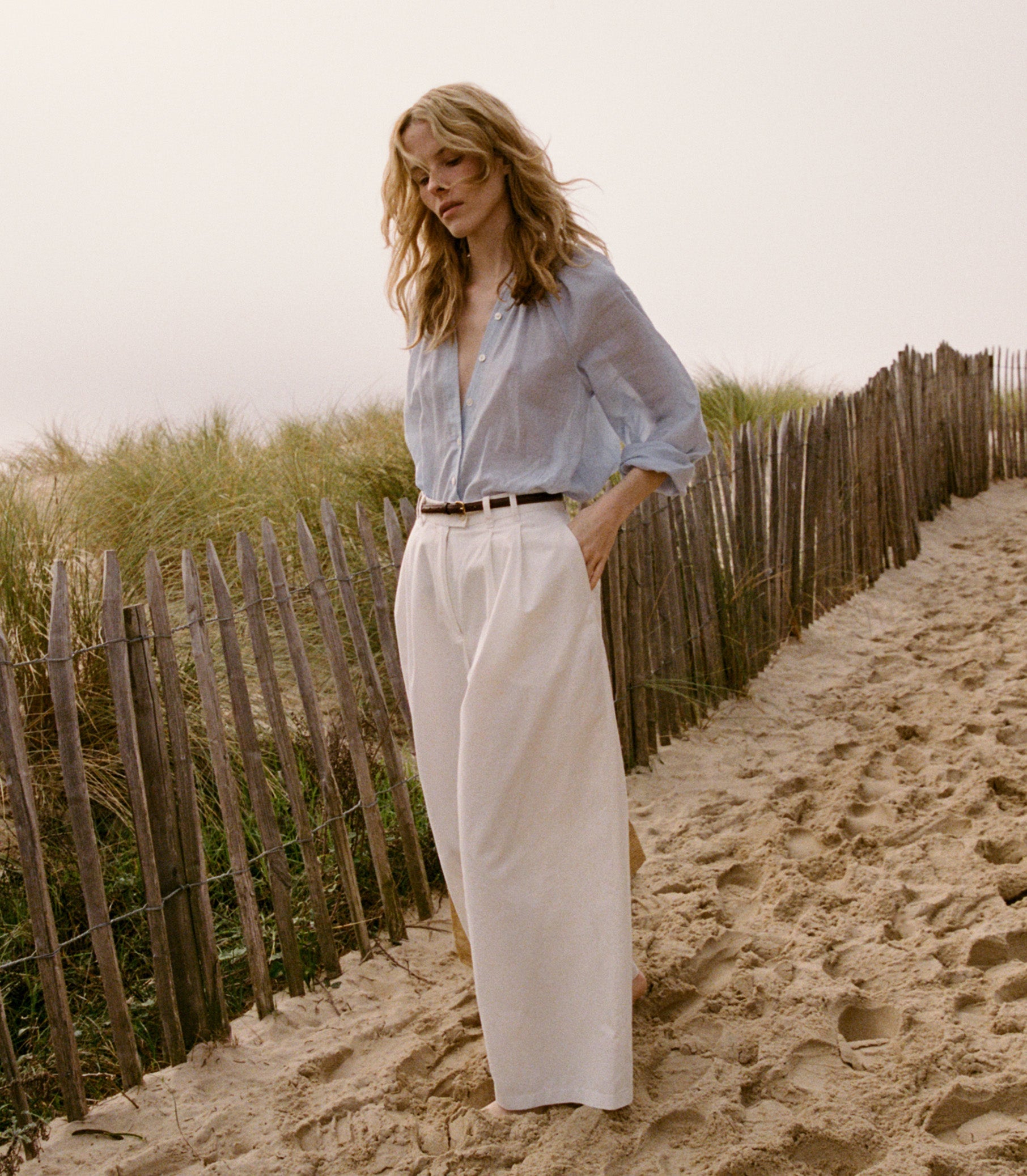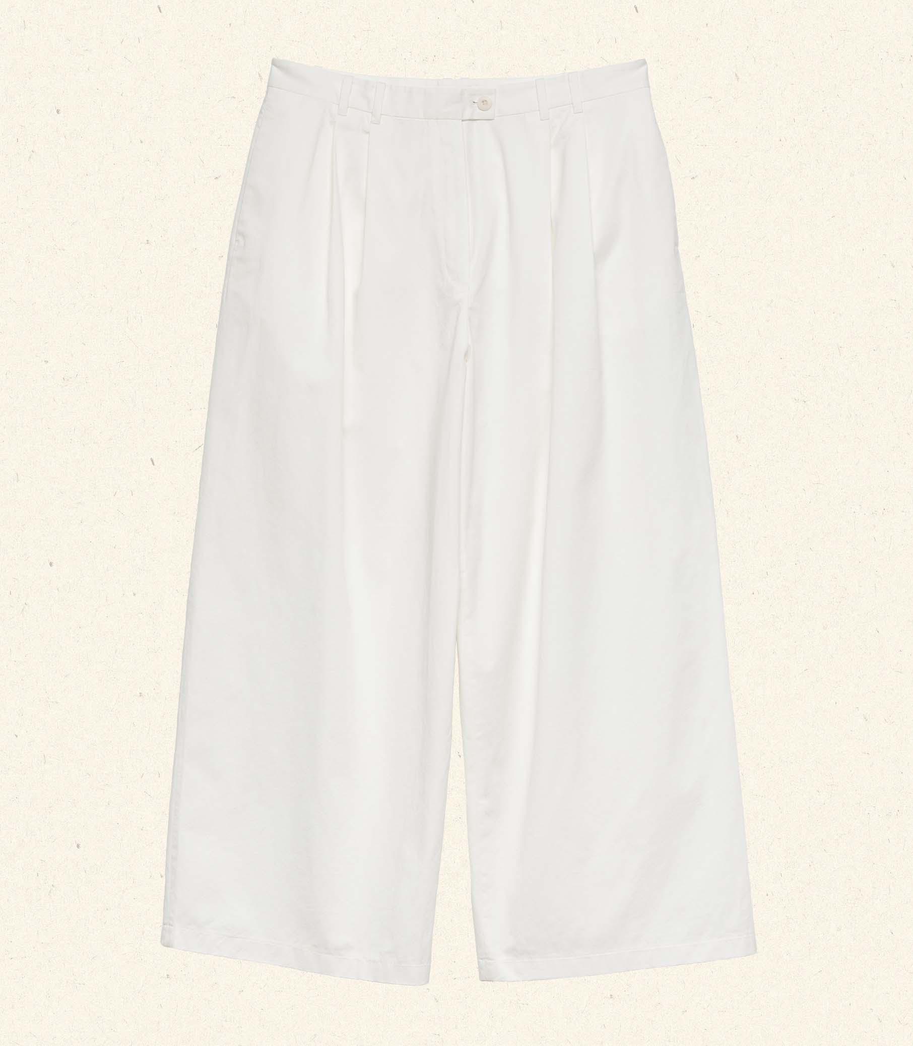 Crafted in a structured cotton twill, the Lisa Pant—a fast favorite of our co-founder Katherine—takes cues from ‘40s tailoring. It features an ultra-high waist, a wide-leg with pleats for ease, side seam pockets, and two welt pockets at the back. A faux horn button and hidden zipper closure fasten at one side.