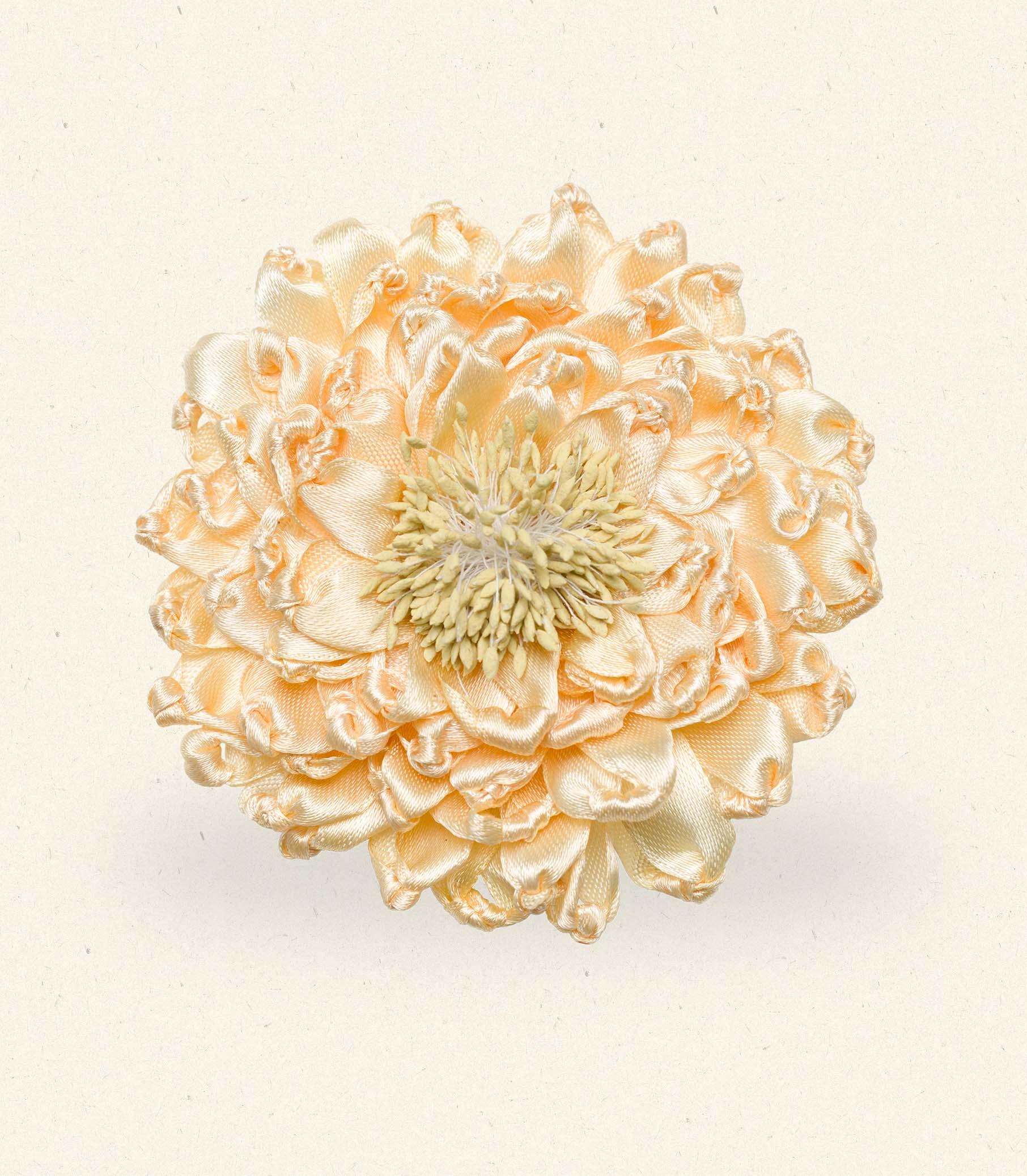 Crafted from a soft, lemon-hued silk-satin, the DÔEN Heirloom Lisabelle Barrette is a nostalgic, playful oversized hair clip with intricate, knotted petal details. Because each barrette is handmade by artisans in India, no two clips are exactly alike.