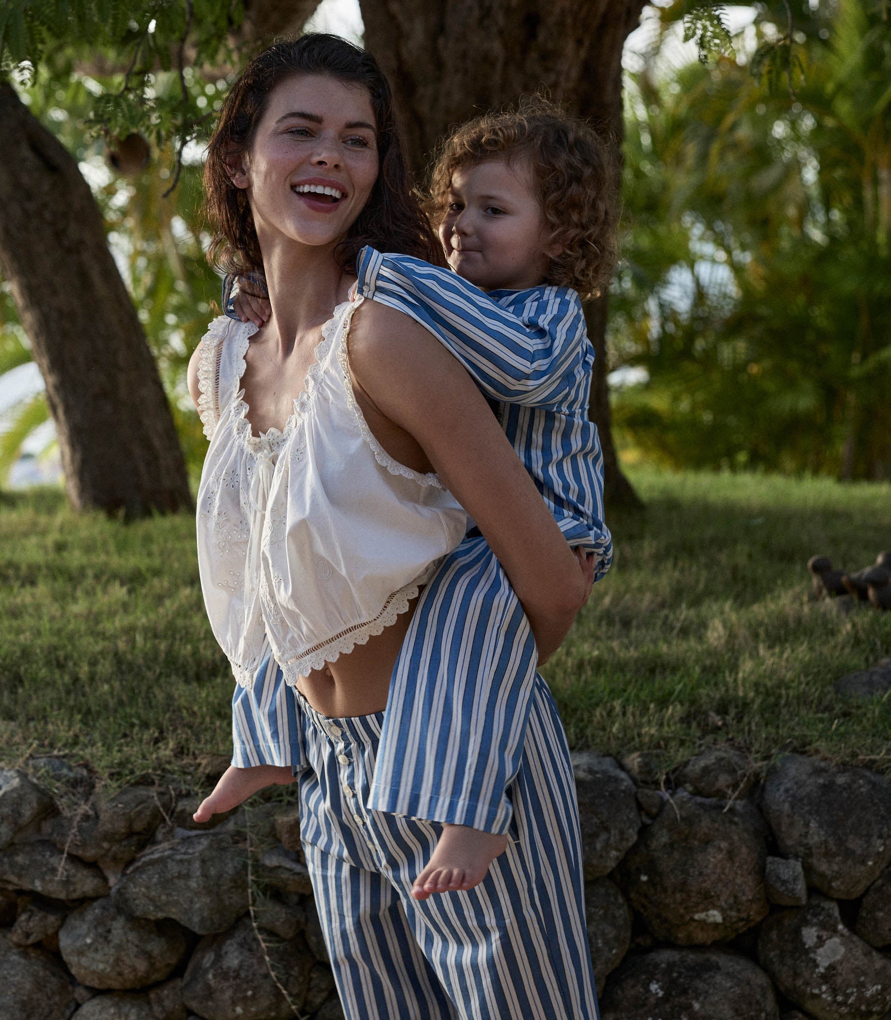 We’ve reimagined our best-selling Morgan Pant for littles, crafted in crisp cotton adorned with our yarn-dyed Lucerne Stripe, featuring an elastic waistband for ease and non-functional buttons at the front.