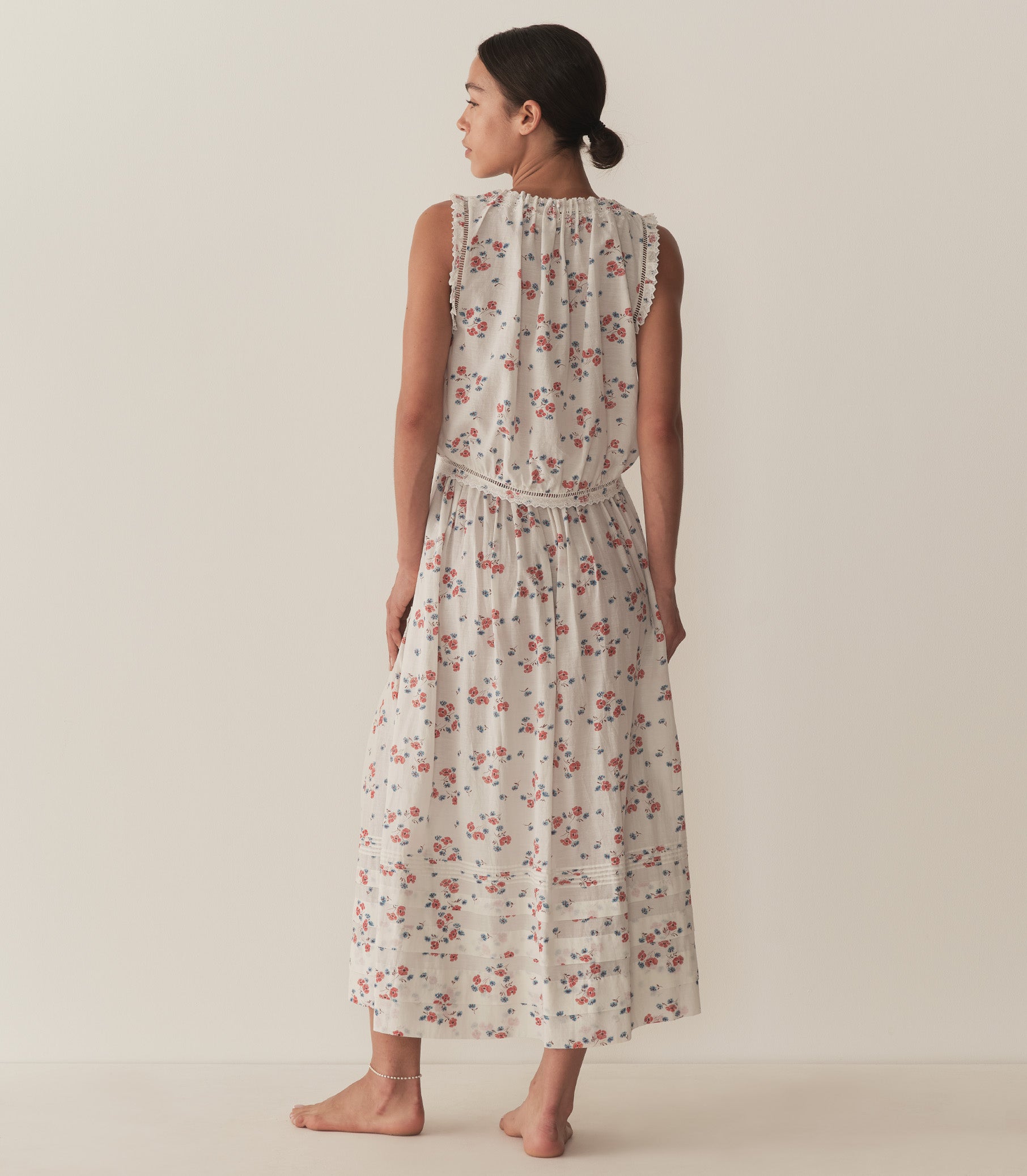 Crafted from a soft, lightweight blend of organic cotton and viscose and adorned with our ‘30s-inspired Poppy Field print, the Marcie Skirt features a high waist and a full, ankle-grazing skirt detailed with pintucks, with an invisible side zipper for the perfect fit.