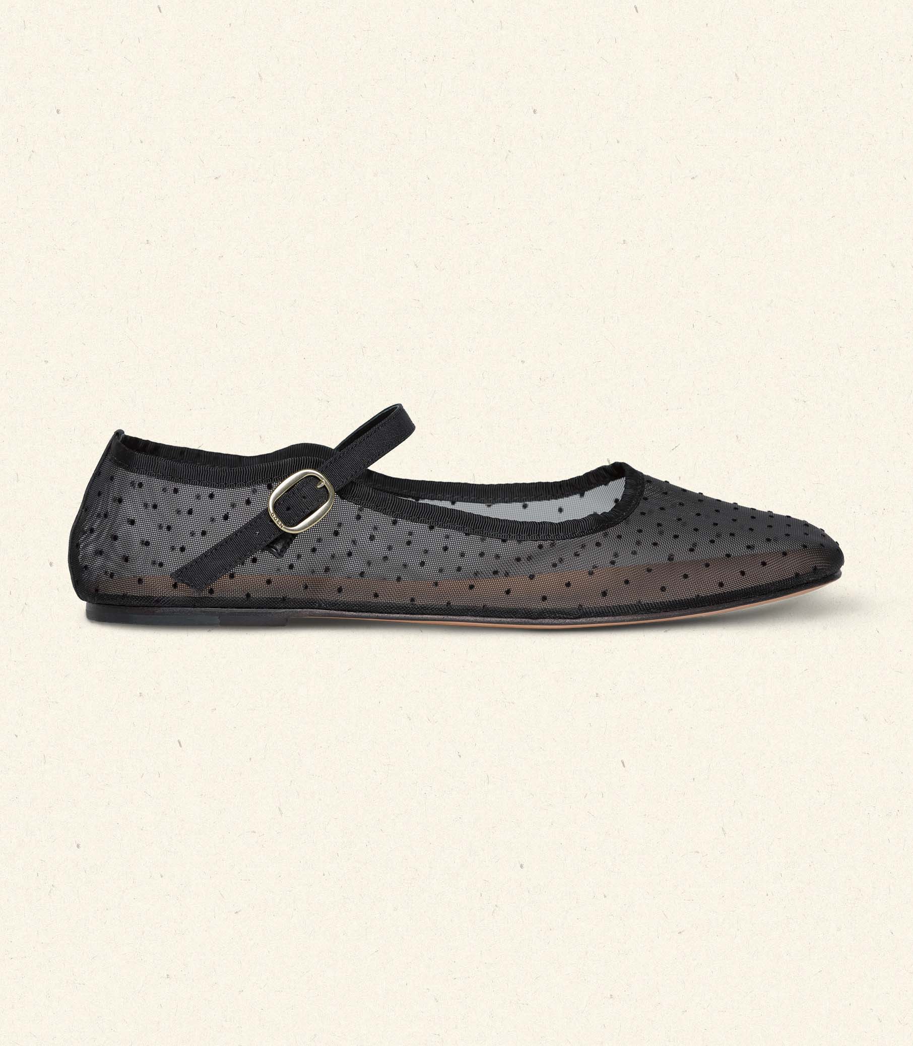 MARY JANE SLIPPER -- BLACK MESH DOT