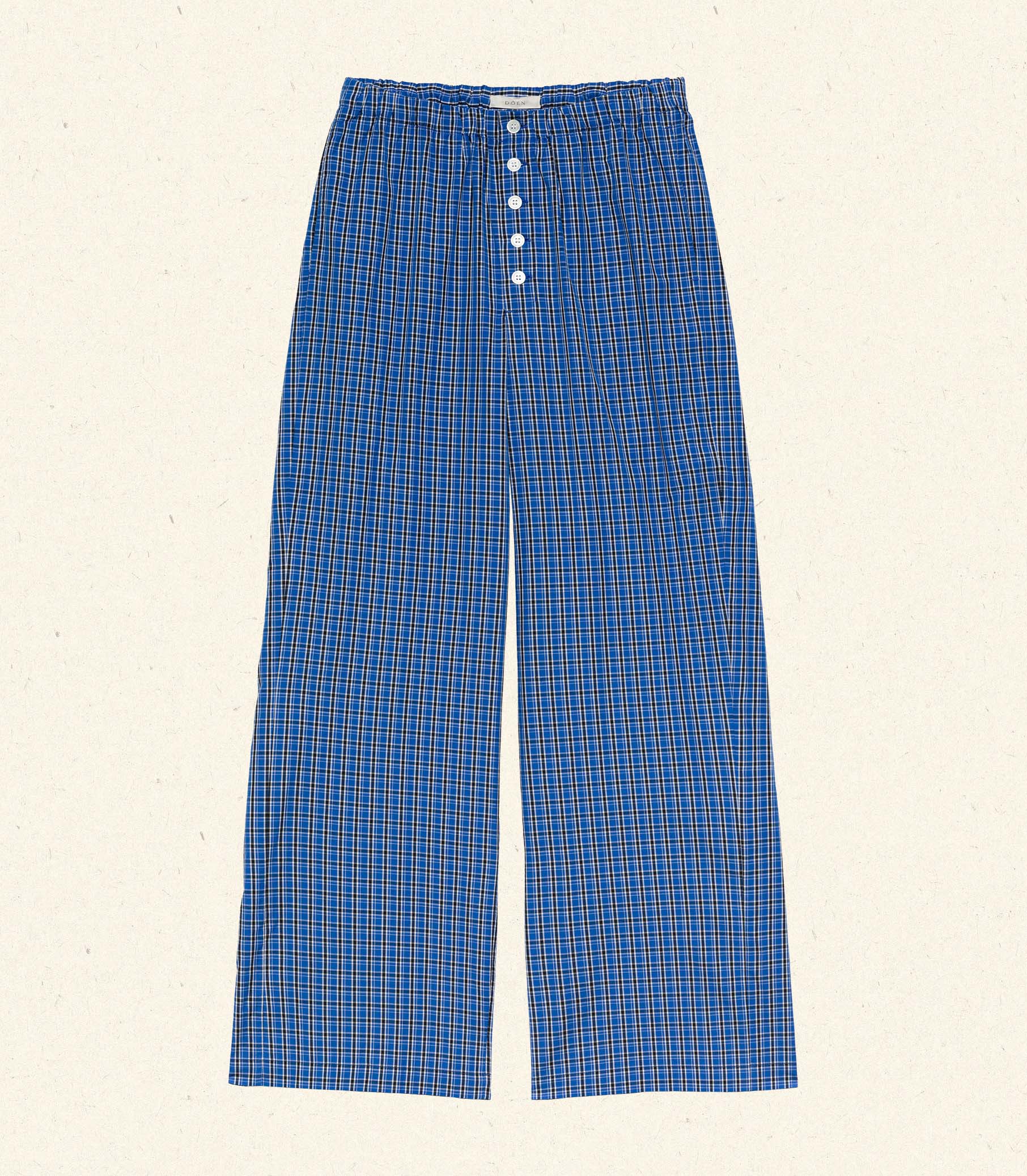 Tailored in a crisp organic cotton poplin and rendered in our workwear-inspired Cassis Check, the Morgan Pant takes cues from vintage sleepwear, featuring a hidden drawstring and an elastic waistband.