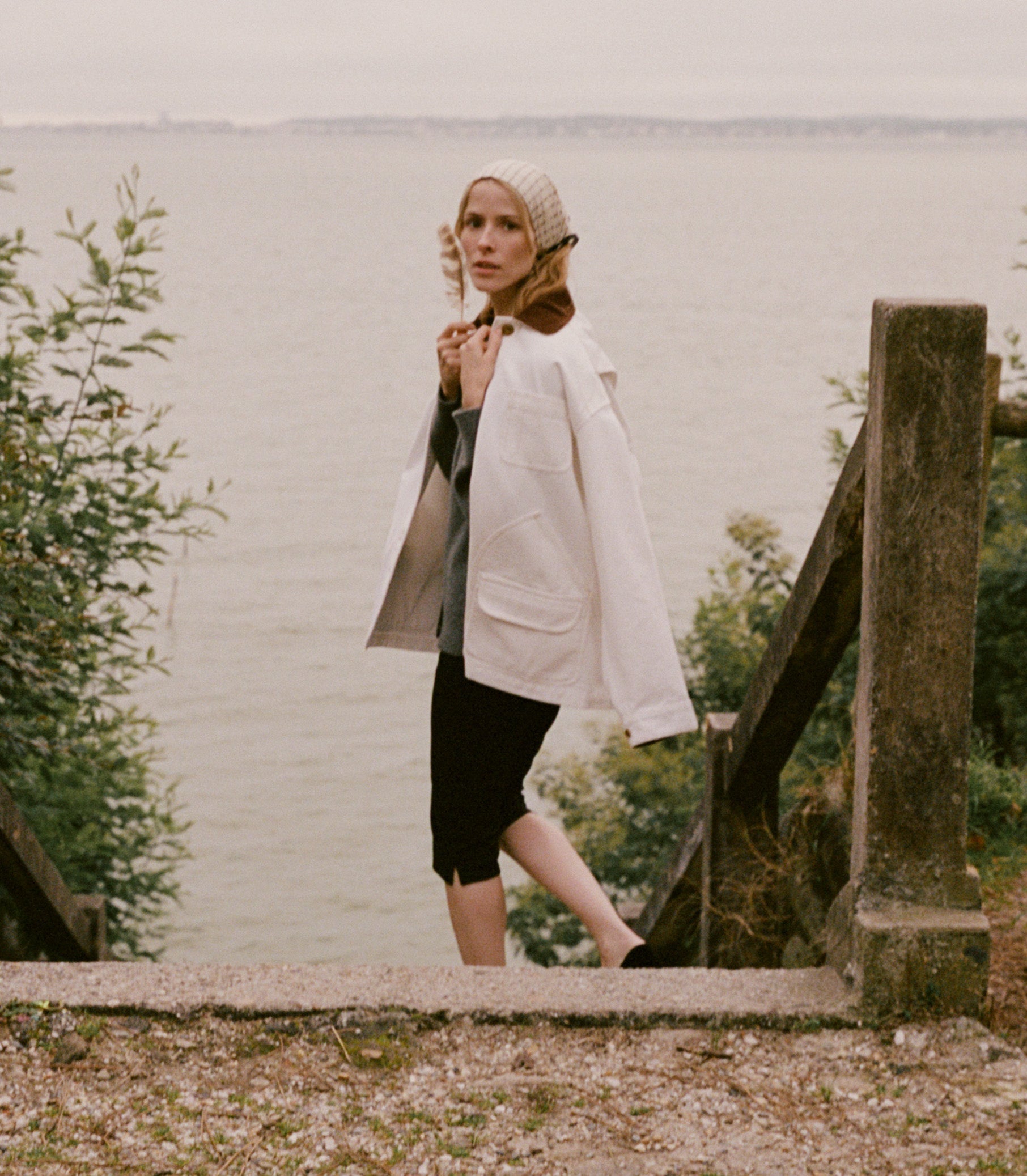 Our garment-dye process gives the Pascual Jacket a lived-in look and feel and lends versatility—it’s a closet keepsake both Margaret and Katherine have been wearing on repeat since early samples arrived. They’re fans of the juxtaposition of utilitarian workwear and feminine details—styling the Pascual with a buttery bias-cut slip skirt, light cashmere layers, and, perhaps most fittingly, with denim to the stables.