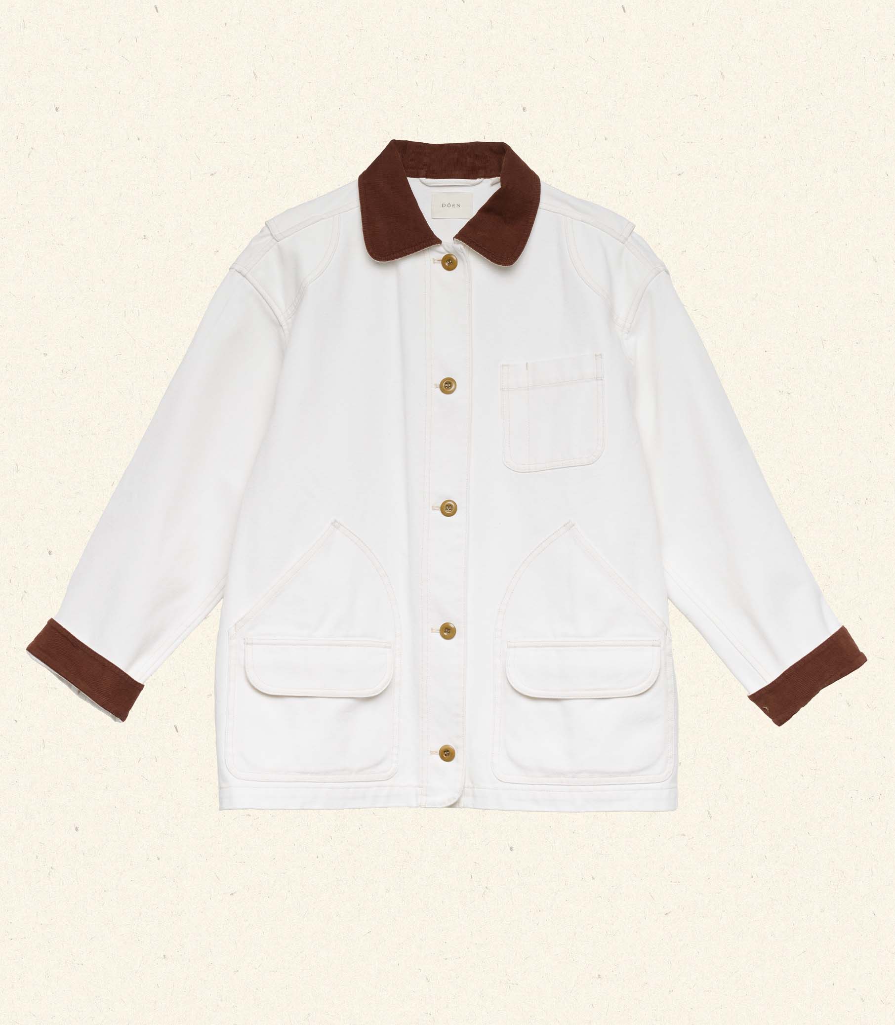 Crafted from garment-dyed cotton, the Pascual Jacket recalls 1940s barn jackets and is reminiscent of a vintage style worn by Margaret and Katherine’s father in Santa Barbara, where they grew up. The jacket features a slouchy, relaxed fit, Corozo buttons, a contrast corduroy collar and inner cuff detail. For added utility, there are two roomy hip pockets, as well as a chest pocket.