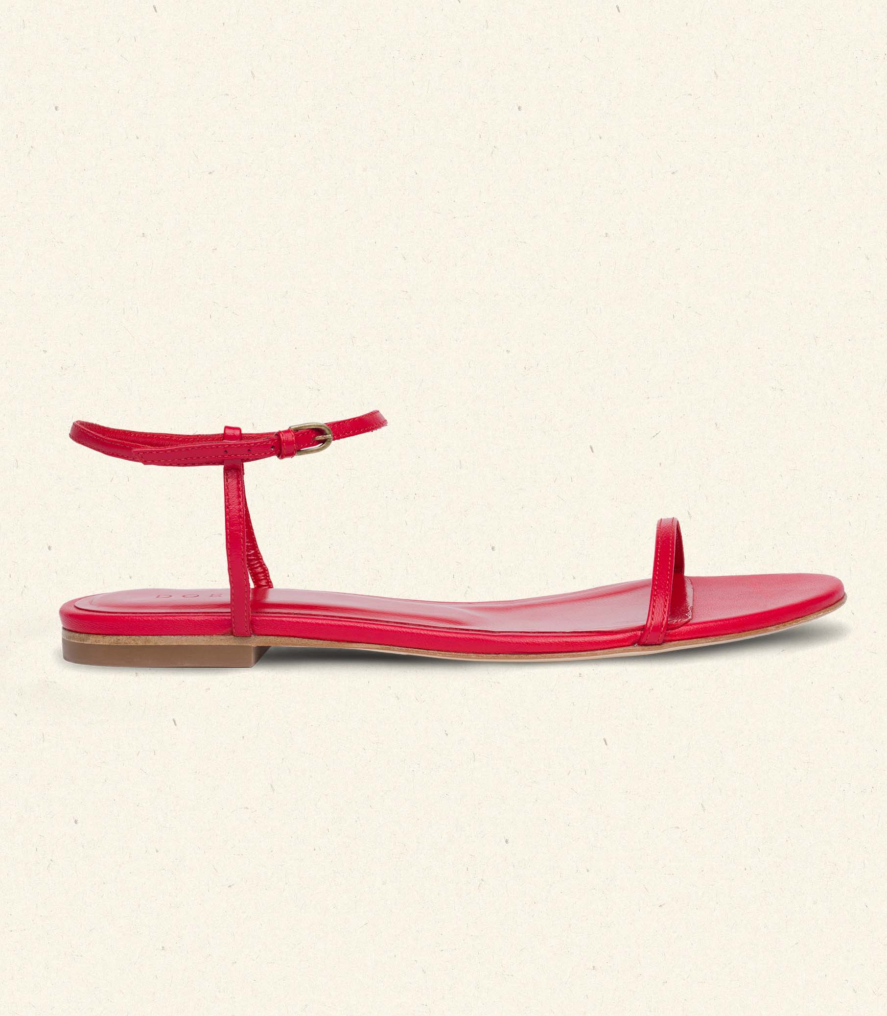 Handcrafted in Italy from Nappa leather, the ‘60s-inspired Sartene is a barely-there flat sandal that’s easily dressed up or down. It features a whisper-thin strap across the toes and a second slim strap that fastens with a petite buckle at the ankle.