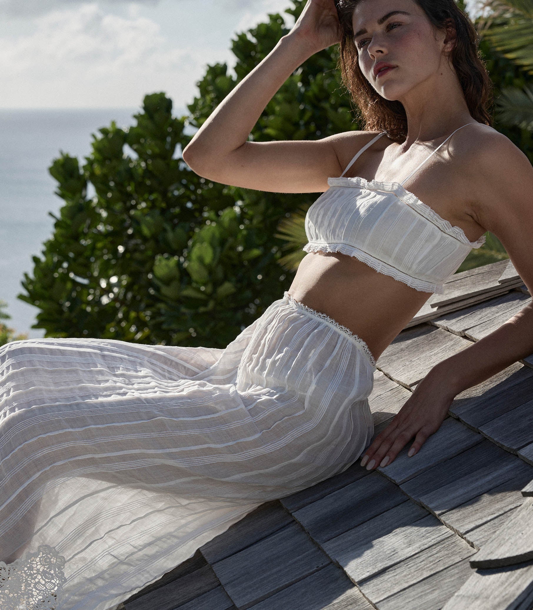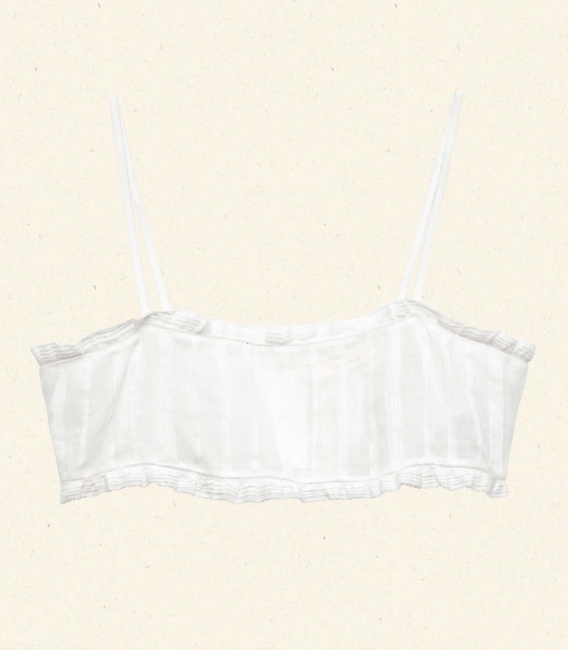 Crafted from a lightweight ramie, the Truitt Top is our take on a classic cropped tank—detailed with delicate pintucks, starburst mother-of-pearl buttons at the center back, and thin, flat grosgrain elastic straps.