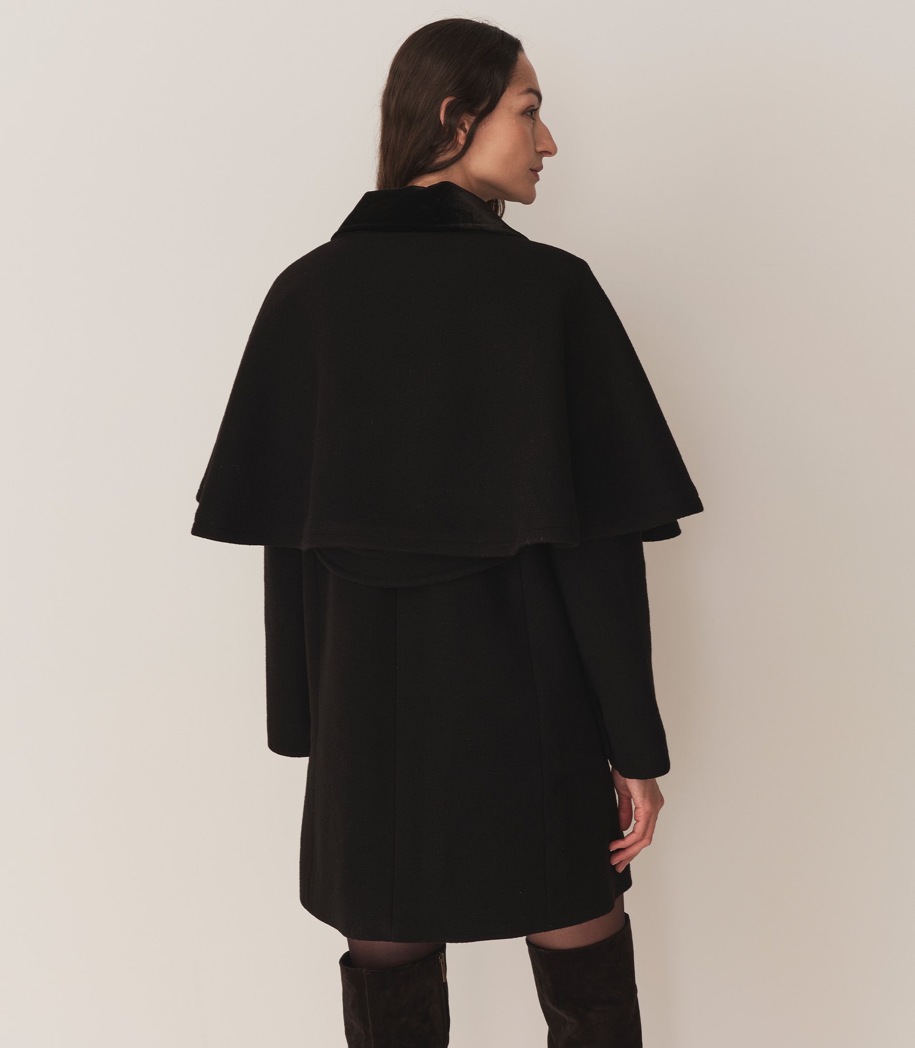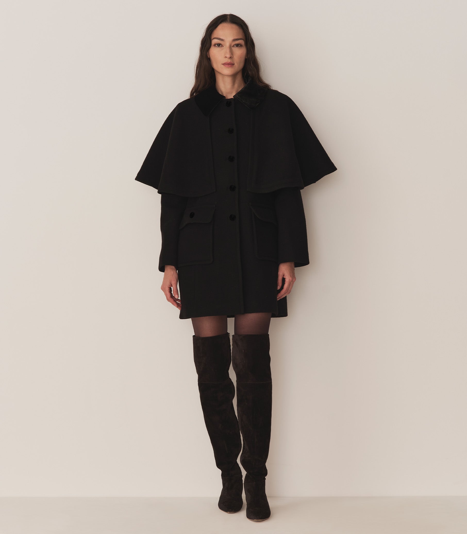 Taking cues from last Holiday’s Kensington Coat, the Watson Coat offers the same beloved details, now with a detachable cape. Crafted from an extra-warm wool-cashmere blend and lined in viscose twill, this ‘60s-inspired style features a subtle A-line cut, velvet buttons, and a wide Italian velvet collar, plus two patch pockets with brass button details, and princess seams for structure. With its tailored, slim fit, it layers nicely over holiday dresses.
